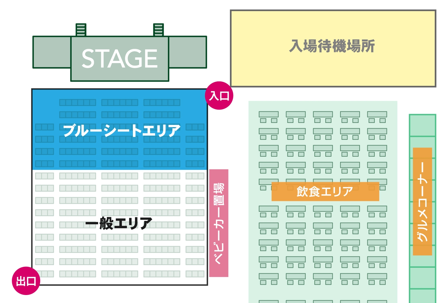 ※ブルーシートエリアはお子様優先エリアとなりますのでご協力のほどお願いいたします。
