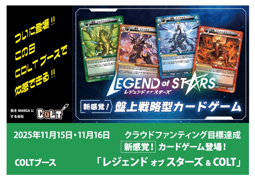 株式会社COLTの挑戦は続きます。カードゲーム事業をスタートするにあたって、今回はレジェンド・オブ・スターズ社とコラボしてトレーディングカード「レジェンド・オブ・スターズ」の広報・体験・展示します!、新感覚!盤上戦略型カードゲームを体感しよう!