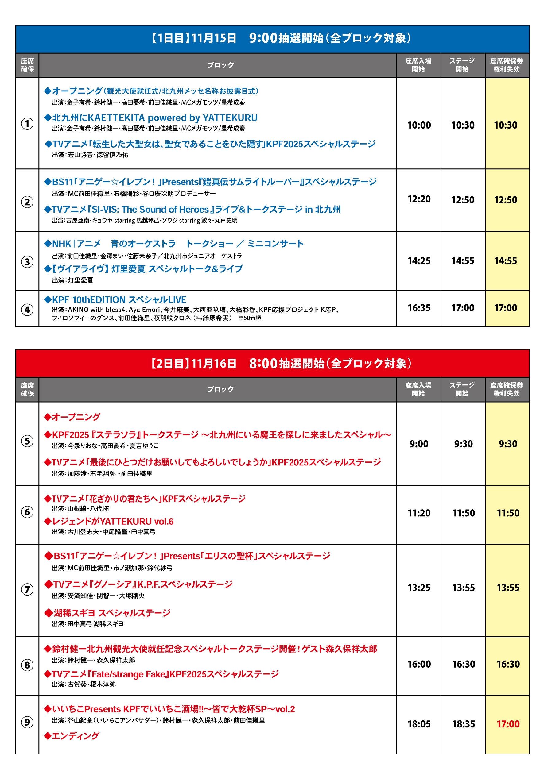 ※⑨の座席指定抽選権利失効時間はステージイベント開始時間より前となっておりますので、時間にご注意ください。