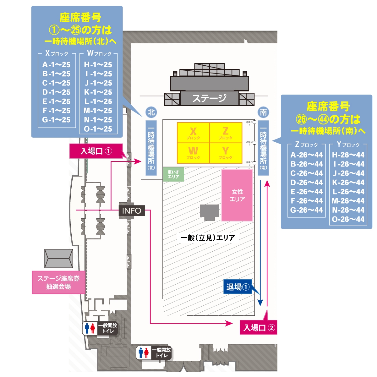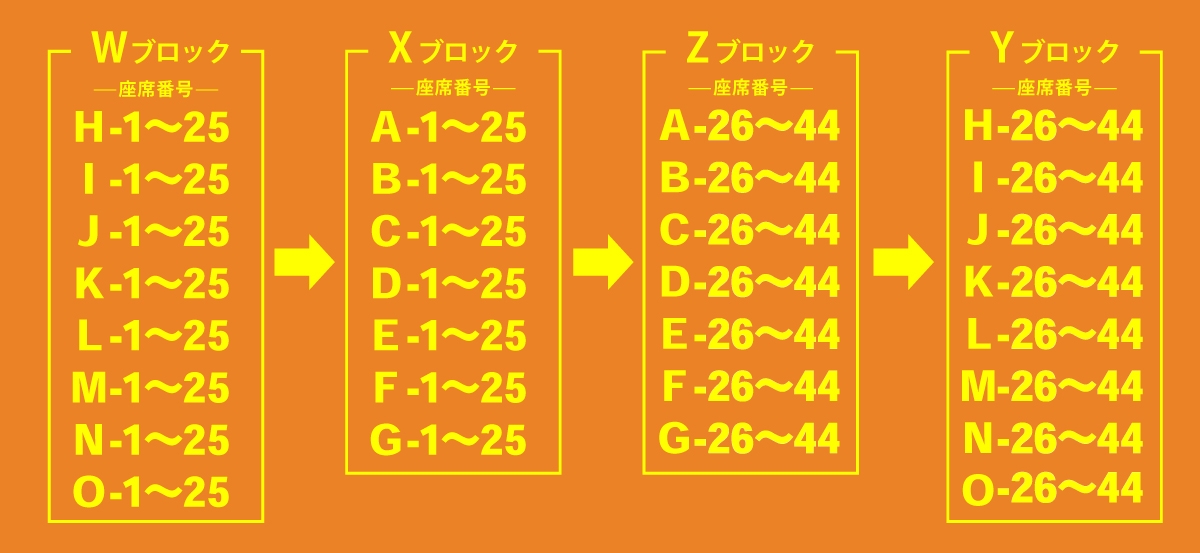 ・退場順はWブロック→Xブロック→Zブロック→Yブロックです。