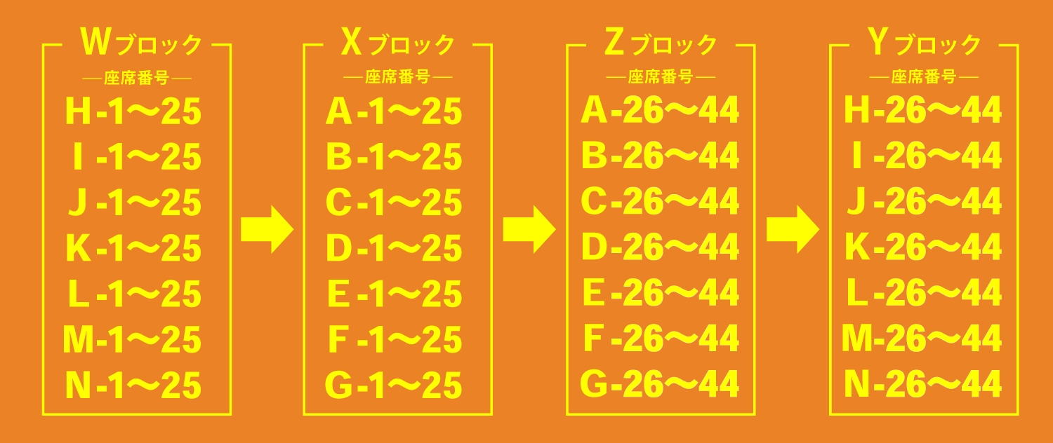 ・退場順はWブロック→Xブロック→Zブロック→Yブロックです。